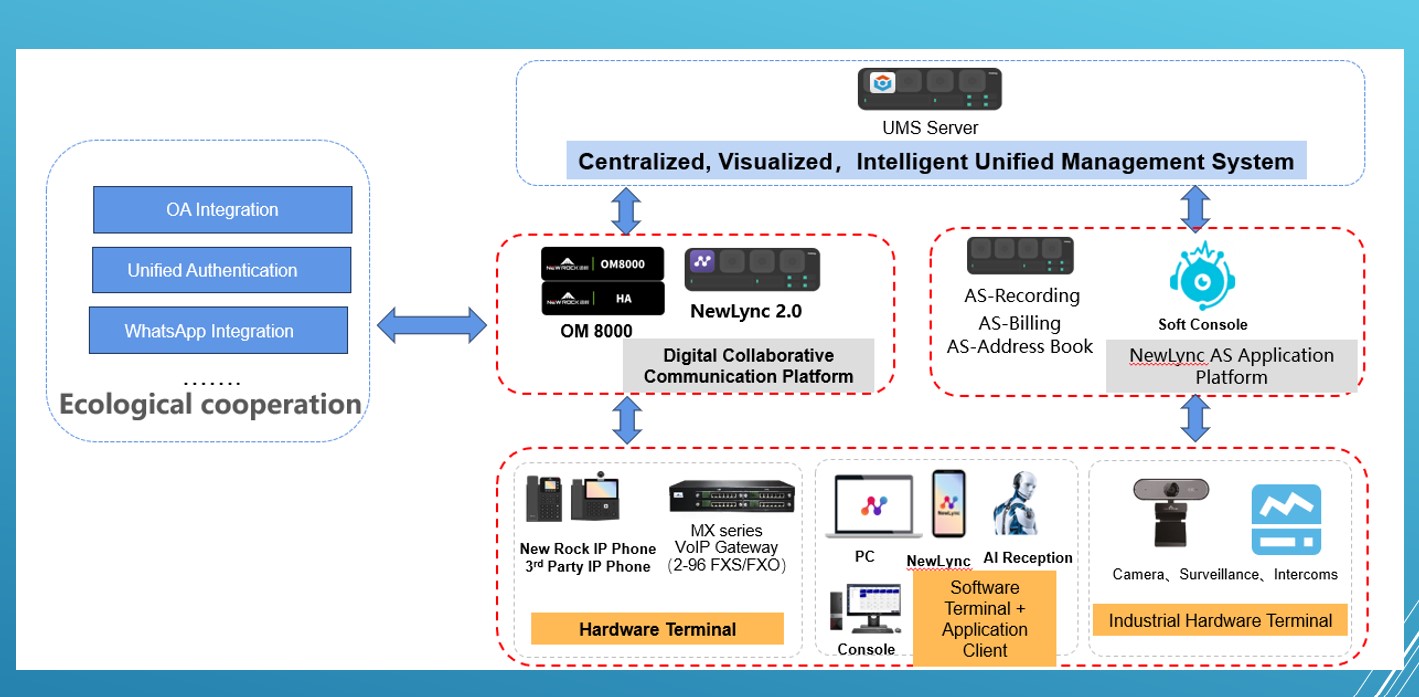 With NEC's recent announcement regarding their exit from the PBX on-premise market, it's essential to consider your options in Government Industry Upgrade Plan. New Rock's Comprehensive Communication Solution Transform your government communication infrastructure with New Rock's cutting-edge solutions. Our Digital Collaborative Communication Platform serves as the core IPPBX, providing a robust foundation to replace NEC's traditional communication systems. This platform, along with our state-of-the-art gateways and terminals, brings unprecedented integration and functionality to your operations. Key Features: Core IPPBX: Centralized management and seamless communication capabilities. AS-Recording: Secure call recording to ensure compliance and enhance security. Advanced Billing System: Anonymized number billing for enhanced privacy and accurate cost management. Integrated Address Book: Streamlined contact management for efficient communication. OA Integration: Smooth integration with Office Automation systems for improved workflow. Unified Authentication: Secure and simplified user authentication across all platforms. WhatsApp Integration: Enhanced communication through popular messaging platforms.