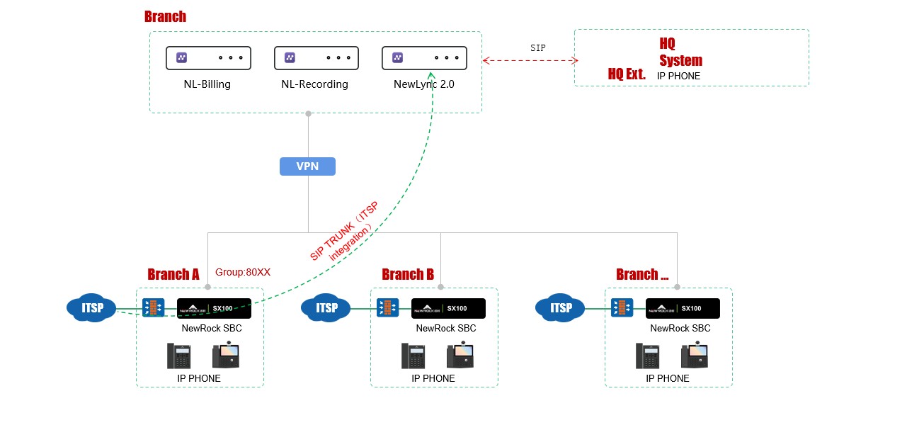 ·Redundant Backup: When communication between branches and the headquarters is interrupted, branches independently handle all calls via local SBC to ensure uninterrupted communication.
