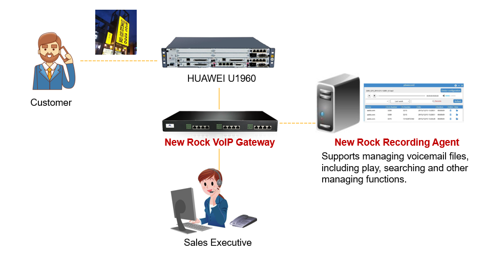 New Rock Recording Agent can automatically record the content of phone calls on the enterprise server, which is convenient for further inquiry, management, evidence collection or training.