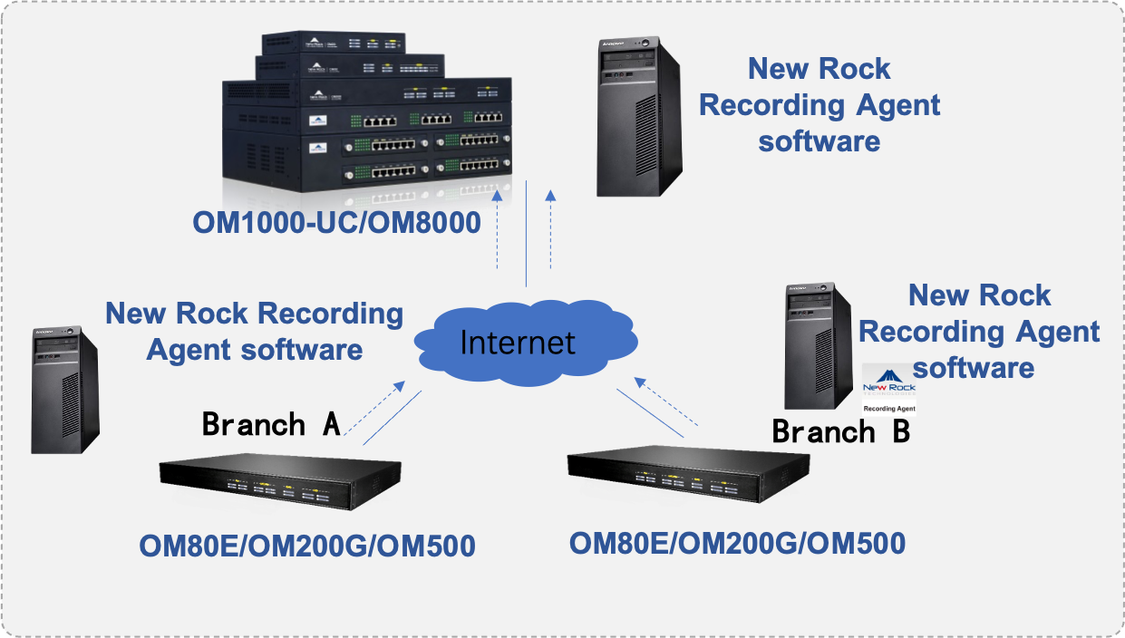 Chain enterprises can adopt the voice networking mode of branch offices choose recording agent +headquarters choosing recording management system for unified centralized management of recording, distributed recording, and centralized management.